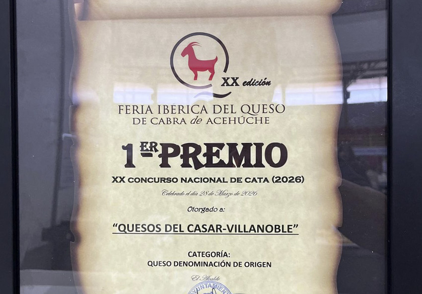 Quesos del Casar S.L. wins first prize for Best P.D.O. Acehúche Cheese 2026, awarded to its goat cheese “Villa Noble” during the 20th edition of the Iberian Goat...