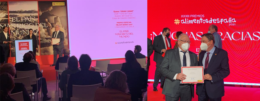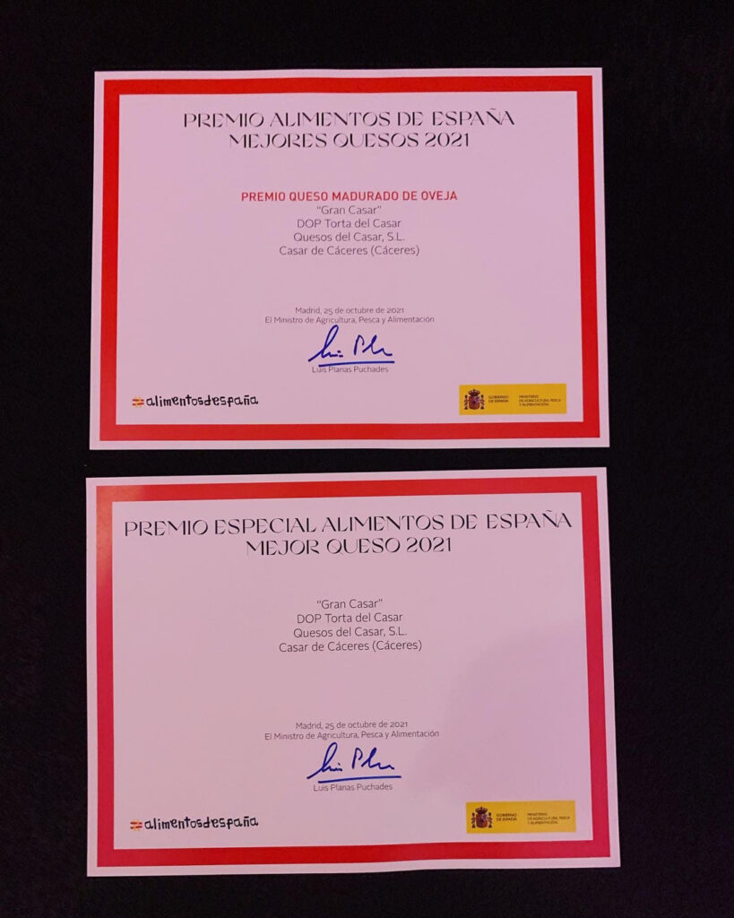 El 25/10/2021 se celebró el acto de entrega de la XXXIII EDICIÓN DE PREMIOS #alimentosdespaña 2021 en la cual nuestra Torta del Casar DOP GRAN CASAR ha sido galardonada con el PREMIO ESPECIAL MEJOR QUESO DE ESPAÑA 2021 que otorga el Ministerio de Agricultura, Pesca y Alimentación del Gobierno de España.